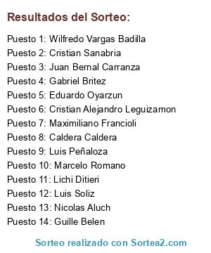Resultados del sorteo: