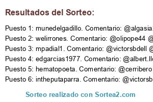 Lista de participantes: Sorteo realizado entre 17 comentarios.
