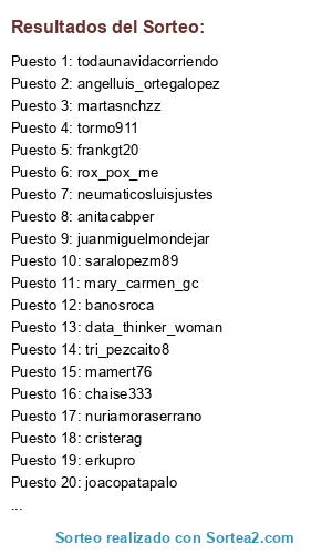 Lista de participantes: neumaticosluisjustes, begonablancoroo, frankgt20, Claramuntroser, Antoniojesuspedrazagomez, patrogonzalezpavon, villarclachato, todaunavidacorriendo, malmierca, data_thinker_woman, tri_pezcaito8, txus_rl, jeanpierrecastro52, martasnchzz, buiyo, sede_nr, maytemcuellar, juliett_vmx, angelinanogues, maresteban72, tormo911, auximedianarodriguez, yolanda_vija, erkupro, pedro_garcia_grupo_c_cilurnigo, conchi592020, rocioblancoporto, las_cabras_clm, jorgebmtb, israelmartin136, tres3eve, cris_cristineta_xtinarro, serranasonbike, isa_menchero, chaise333, rodames_btt_blanes, mamert76, nuriamoraserrano, angelluis_ortegalopez, cris_ti_nae, anitacabper, cristerag, mary_carmen_gc, wwconsultoria_i9, osmaiki, saralopezm89, vitisvelado_by_el_hacedor, banosroca, rox_pox_me, carl0s1111, isbell_isa, dasaca89, ricardprivat1, rinxolada, karola_cdo, joacopatapalo, alejandro_zardoya, miriland_4, juanmiguelmondejar, maricarmenvalleplomino, ana.blzqz, marimar278, eps281.