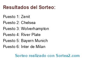 Lista de participantes: Chelsea, River Plate, Zenit, Wolverhampton, Inter de Milan, Bayern Munich.