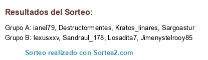 Lista de participantes: Sargoastur, Jimenystelrooy85, Sandraul_178, Destructormentes, Kratos_linares, ianel79, lexusxxv, Losadita7.