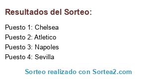Lista de participantes: Atletico, Sevilla, Napoles, Chelsea.