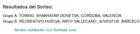 Lista de participantes: SHAKHATAR DONETSK, CORDOBA, BARCELONA GUAYAQUIL, VALENCIA, JUVENTUS, RAYO VALLECANO, RECREATIVO HUELVA, TORINO.