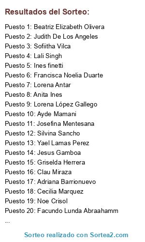 Lista de participantes: Anita Ines(2 participaciones), Lorena López Gallego(2 participaciones), Facundo Lunda Abraahamm(2 participaciones), Silvina Sancho(2 participaciones), Gabriela Moreno(2 participaciones), Rocio del Cielo(2 participaciones), Noe Crisol(2 participaciones), Mariie Lizz(2 participaciones), Rodry Cn(2 participaciones), Rocio Livelli(2 participaciones), Cecilia Marquez(2 participaciones), Ines finetti(2 participaciones), Ivan Frzx Guanca(2 participaciones), Jesus Gamboa(2 participaciones), Beatriz Elizabeth Olivera(2 participaciones), Josefina Mentesana(2 participaciones), Romina Guastella(2 participaciones), Judith De Los Angeles(2 participaciones), MAjo cja(2 participaciones), Flor Abril Abán(2 participaciones), Emilio Martín Sisterna(2 participaciones), Aylen Rocio Alarcon(2 participaciones), Gaston Alzogaray(2 participaciones), Martin Gimenez(2 participaciones), Cati Di Puglia(2 participaciones), Lali Singh(2 participaciones), Gabriela Abalos(2 participaciones), Ayde Mamani(2 participaciones), Lorena Antar(2 participaciones), Silvina Diaz(2 participaciones), Sofiitha Vilca(2 participaciones), Natalia Saravia(2 participaciones), Carii Ferreyra(2 participaciones), Claudio Luna(2 participaciones), Yael Lamas Perez(2 participaciones), Francisca Noelia Duarte(2 participaciones), Clau Miraza(2 participaciones), Ivan Javier Mandiola Burgos(2 participaciones), Griselda Herrera(2 participaciones), Carolina Toledo(2 participaciones), Adriana Barrionuevo(2 participaciones), Laura Mendoza Colazo(2 participaciones), Mika González(2 participaciones), Liliana Ossola(2 participaciones), Matias Diaz(2 participaciones).