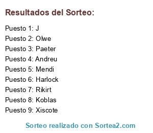 Lista de participantes: Paeter, Mendi, Xiscote, J, Olwe, Koblas, Harlock, Rikirt, Andreu.