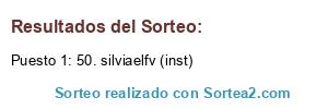 Lista de participantes: 1. Silvia Fontao , 2. Fontaosilvia (inst) , 3. @fontao78 (twitter) , 4. Ana María de Fuentes , 5. Ana María de Fuentes 2 , 6. @Anandadharana (twitter) , 7. novadharana (inst) , 8. Silvia Bartolome , 9. @SilviaBMa (twitter) , 10. Charito López García , 11. Charitolg (twitter) , 12. Charilopezgarcia (inst) , 13. Beatriz García Barrero , 14. beita24agp (inst) , 15. Rmaria Camacho , 16. Rosa Guijarro Calabuig , 17. rosapaula2 (inst) , 18. @ROSAPAULA2 (twitter) , 19. Eugenia Miranda García , 20. @EugeniaMirangar (twitter) , 21. eugemirga (inst) , 22. Nuria Macias G , 23. nuriamg68 (ins) , 24. @nuriamg68 (twitter) , 25. Rosario Casarino , 26. @rosariocasarino (ins) , 27. @paola20004 (twitter) , 28. Nagore Arostegui Rojo , 29. @nagorearostegui (inst) , 30. @13nagore13 (twitter) , 31. Consuelo Cremades Martínez , 32. @consuelocremade (twitter) , 33. concrema66 (inst) , 34. Fina Zamora Murillo , 35. Zulema Pontes Vidal , 36. @ZulemaPontesVid (twitter) , 37. Anpoce (ins) , 38. @ocantonio99 (twitter) , 39. @CarmeSoler8 (twitter) , 40. @haarakiiri (twitter) , 41. @mggpetepau (twitter) , 42. Sonia Diego , 43. Sonia Diego 2 , 44. xonia.diego6 (inst) , 45. @9xonia (twitter) , 46. arcdesanmarti (inst) , 47. stan11061980 (inst) , 48. Silvia Fernandez , 49. silviaelfv (inst) , 50. rosariovava (inst) , 51. elenasoyhelen (inst) , 52. Marta YC , 53. Marta YC 2 , 54. dalia.roja (inst) , 55. @anapinana1 (twitter) , 56. Rafael Arrebola , 57. Eva Lopez , 58. María del Mar Saelices , 59. Lola Lopez , 60. Alfonso Diaz Diaz , 61. Elena Portaz , 62. Garcia Angeles , 63. Eva Diaz , 64. Carolina Roger Manzano , 65. carolroma45 (inst) , 66. @carolroma74 (twitter) , 67. Luis de Reyes , 68. Noelia Alonso Pa , 69. Noeliapaseos (inst) , 70. @noeliapaseando (twitter) , 71. Pepita Clariso , 72. Kamal Sev , 73. Ana Maria Diaz Borja , 74. Aixa Ar , 75. @aixapr1998 (twitter) , 76. aixaar (inst) , 77. Elena Iglesias Heler , 78. heler_piko (inst) , 79. Susana Martínez , 80. Susana Martínez 2 , 81. tataqueen1990 (inst) , 82. @girl_svm (twitter) , 83. Núria Granados , 84. Núria Granados 2 , 85. Bea Gut Val , 86. Nagorealmagro (inst) , 87. @sarahgarcia2012 (twitter) , 88. @paola20004 (twitter) , 89. Sonia Garcia Pastor , 90. Maria José López Alvarez , 91. María José López Alvarez (2) , 92. mariajose.lopezalvarez5 (inst) , 93. Miguel Verdejo , 94. Gemma García Molina , 95. Óscar Esteban , 96. Espe Garcia Garcia , 97. Carmen Contreras , 98. Carmen Contreras 2 , 99. carmencn_72 (inst) , 100. @CarmenCN72 (twitter) , 101. Maria Pilar Ortiz , 102. María Pilar Ortiz 2 , 103. pilarortizruiz1963 (inst) , 104. stalin.joffre (inst) , 105. amaya_santesteban (inst) , 106. j.pastorini (inst) , 107. Pilar Garabatos Lois , 108. lau_ladelri (inst) , 109. Laura del Río , .