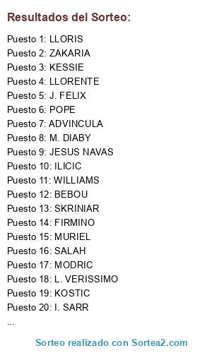 Resultados del sorteo: