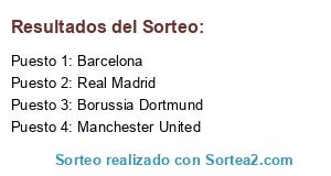 Lista de participantes: Real Madrid, Barcelona, Manchester United, Borussia Dortmund.