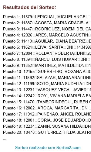 - Puesto 3: 11447 RODRIGUEZ, NOEMI DEL CARMEN DNI 12432427