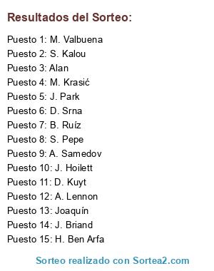 Lista de participantes: B. Ruíz, M. Valbuena, Alan, S. Kalou, H. Ben Arfa, J. Briand, D. Kuyt, J. Hoilett, A. Lennon, J. Park, D. Srna, Joaquín, M. Krasić, A. Samedov, S. Pepe.
