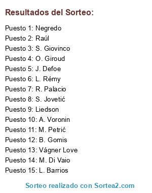 Lista de participantes: L. Rémy, S. Jovetić, J. Defoe, M. Di Vaio, M. Petrić, Vágner Love, Liedson, L. Barrios, B. Gomis, Raúl, A. Voronin, S. Giovinco, R. Palacio, Negredo, O. Giroud.