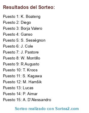 Lista de participantes: M. Hamšik, P. Aimar, T. Kroos, K. Boateng, Ganso, J. Pastore, Diego, S. Kagawa, Borja Valero, Lucas, S. Sessègnon, R.Augusto, J. Cole, W. Montillo, A. D'Alessandro.
