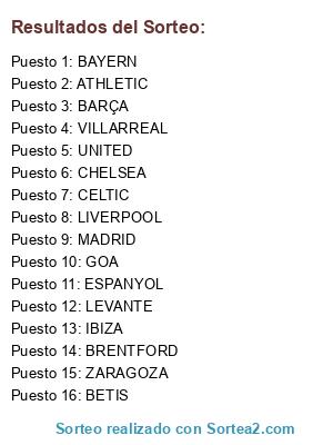 Lista de participantes: BRENTFORD, BAYERN, CHELSEA, VILLARREAL, CELTIC, LEVANTE, BARÇA, UNITED, MADRID, BETIS, ESPANYOL, LIVERPOOL, IBIZA, GOA, ZARAGOZA, ATHLETIC.