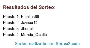 Lista de participantes: Eltirillas66, Mundo_Oculto, Jhoeel, Javiixu14.