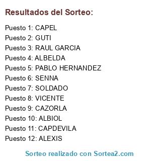 Lista de participantes: ALBIOL, GRANERO, DE LA PEÑA, MARCHENA, RAUL GARCIA, BORJA VALERO, JURADO, NEGREDO, SOLDADO, LLORENTE, PEDRITO, DEALBERT, MATA, JOAQUIN, PABLO HERNANDEZ, CAPDEVILA, CAPEL, VICENTE, ADURIZ, GUIZA, RAUL, BOJAN, SENNA, REYES, ARBELOA, LOPO, ALEXIS, DAVID NAVARRO, AMOREBIETA, IRAOLA, BUSQUETS, CAZORLA, GUTI, ALBELDA, J.MARTINEZ, BARAJA, .