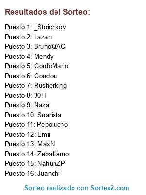 Lista de participantes: Naza, Suarista, Juanchi, Lazan, Rusherking, Zeballismo, _Stoichkov, Gondou, MaxN, BrunoQAC, NahunZP, 30H, Emii, Pepolucho, Mendy, GordoMario.