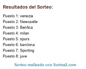 Lista de participantes: juve, spurs, Sporting, Newcastle, venezia, barclona, Benfica, milan.