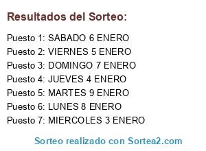 Lista de participantes: MIERCOLES 3 ENERO, JUEVES 4 ENERO, VIERNES 5 ENERO, SABADO 6 ENERO, DOMINGO 7 ENERO, LUNES 8 ENERO, MARTES 9 ENERO.
