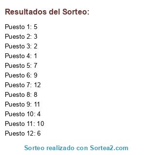 Resultados del sorteo: