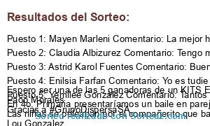 - Ganador 4: Enilsia Farfan Comentario: Yo es tudie en una es cuela publica de mi querido pueblo y mu historia es que cada 15 de septiembre yo era parte de las famosas batonistas me gustaba muchisisisimo participar a vese mis padres no tenian dinero para comparme el uniforme de batonista pero al final se las arreglaban para comprarmelo por ellos sabian lo mucho que megustaba ser batonista era muy cansado pero era mas grande mi felicidad por participar con muchas compañeras son recuerdos muy bonitos Espero ser una de las 5 ganadoras de un KITS ESCOLAR verdad Paoo Morales Gracias a #GrupoDispersaSA