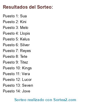 Resultados del sorteo: