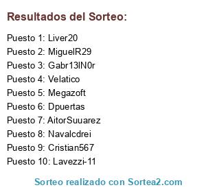 Lista de participantes: Megazoft, MiguelR29, Velatico, Cristian567, Lavezzi-11, Dpuertas, AitorSuuarez, Liver20, Navalcdrei, Gabr13lN0r.