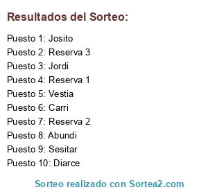 Lista de participantes: Sesitar, Abundi, Diarce, Carri, Jordi, Josito, Vestia, Reserva 1, Reserva 2, Reserva 3.