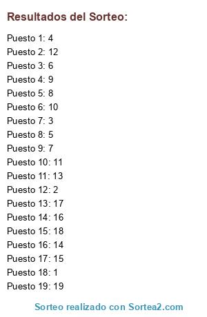 Resultados del sorteo: