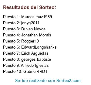 Lista de participantes: georges baptiste, EdwardLongshanks, Erick Arguedas, Jonathan Morais, Alfredo Iglesias, Marcoslmaz1989, GabrielRRDT, jonyg2011, Duvan Novoa, Rogger19.