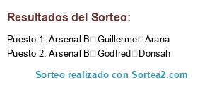 Lista de participantes: Arsenal B Godfred Donsah, Arsenal B Guillerme Arana.