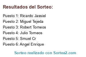 Lista de participantes: Angel Enrique, Julio Torneos, Robert Torneos, Smuel Cr, Ricardo Jassiel, Miguel Tejeda.