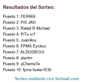 Lista de participantes: alanlm, fpmx faster1035, Rated R Michael, aChemeTe, PiTu cr7, Pr0 JAVi, Juanillou, ALDODIEGO, FPMX Eyckoz, FER666.