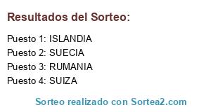 Lista de participantes: SUECIA, SUIZA, DINAMARCA, POLONIA, REP. CHECA, RUMANIA, ISLANDIA, NORUEGA.