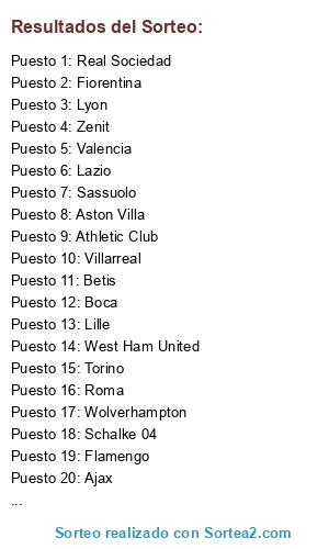 Lista de participantes: Ajax, Aston Villa, Athletic Club, Benfica, Betis, Boca, Cagliari, Fiorentina, Flamengo, Lazio, Lille, Lyon, Marsella, Monaco, Porto, Real Sociedad, River, Roma, Sassuolo, Schalke 04, Torino, Valencia, Villarreal, West Ham United, Wolverhampton, Zenit.