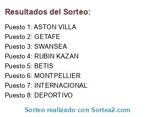 Lista de participantes: GETAFE, BETIS, ASTON VILLA, MONTPELLIER, DEPORTIVO, INTERNACIONAL, SWANSEA, RUBIN KAZAN.