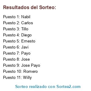 Lista de participantes: Carlos, Romero, Jose, Payo, Diego, Nabil, Ernesto, Javi, Willy, Jose Payo, Tillo.