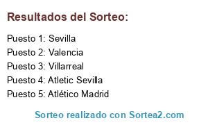 Lista de participantes: Villarreal, Atlético Madrid, Atletic Sevilla, Sevilla, Valencia.