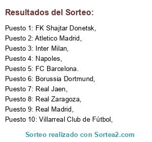 Resultados del sorteo: