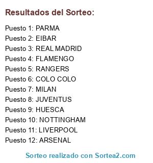 Lista de participantes: ARSENAL, COLO COLO, EIBAR, FLAMENGO, HUESCA, JUVENTUS, LIVERPOOL, MILAN, NOTTINGHAM, PARMA, RANGERS, REAL MADRID.