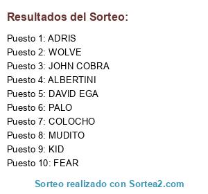 Lista de participantes: ADRIS, ALBERTINI, COLOCHO, DAVID EGA, FEAR, KID, MUDITO, PALO, WOLVE, JOHN COBRA.