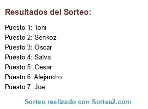 Lista de participantes: Toni, Joe, Senkoz, Alejandro, Salva, Cesar, Oscar.