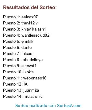 Lista de participantes: antonio, carlos, carlos vjunior, carlos vsenior, david, DESCANSO, hector, ivan, miguel angel, sergio.