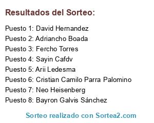 Lista de participantes: Sayin Cafdv, David Hernandez, Adriancho Boada, Cristian Camilo Parra Palomino, Neo Heisenberg, Bayron Galvis Sánchez, Arii Ledesma, Fercho Torres.