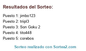 Lista de participantes: javitoloco, jimbo123, xjhoy, batdjoe, triipl3, tito448, corebos, wanted23180, El Mariscal Negr, Son Goku 2.