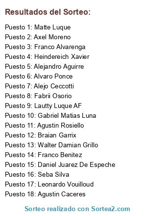 Lista de participantes: Leonardo Vouilloud, Agustin Caceres, Axel Moreno, Matte Luque, Seba Silva, Alejo Ceccotti, Franco Benitez, Fabrii Osorio, Walter Damian Grillo, Franco Alvarenga, Lautty Luque AF, Alvaro Ponce, Braian Garrix, Daniel Juarez De Espeche, Gabriel Matias Luna, Alejandro Aguirre, Heindereich Xavier, Agustin Rosiello.