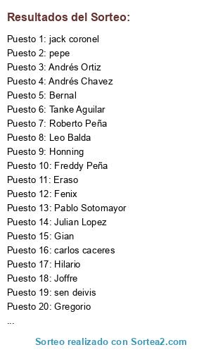 Lista de participantes: Joffre, Bernal, Hilario, Gregorio, Leo Balda, Tanke Aguilar, sen deivis Eraso, pepe, carlos caceres, jack coronel, Andrés Chavez, Pablo Sotomayor, Julian Lopez, Roberto Peña, Freddy Peña, Fido, Julio Franco Mogro, Gian, Andrés Ortiz, Fenix, Honning.