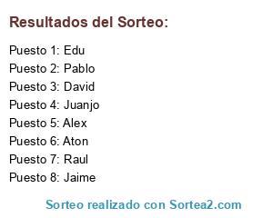 Lista de participantes: Juanjo, Edu, Jaime, Raul, Alex, Pablo, David, Aton.