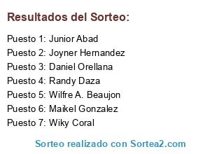 Lista de participantes: Randy Daza, Wilfre A. Beaujon, Joyner Hernandez, Maikel Gonzalez, Wiky Coral, Daniel Orellana, Junior Abad.