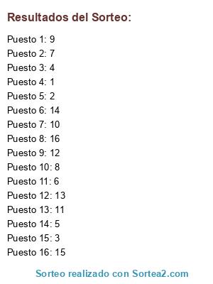 Lista de participantes: 1, 2, 3, 4, 5, 6, 7, 8, 9, 10, 11, 12, 13, 14, 15, 16.