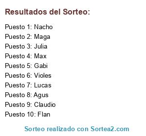 Lista de participantes: Claudio, Julia, Flan, Lucas, Violes, Agus, Maga, Nacho, Gabi, Max.